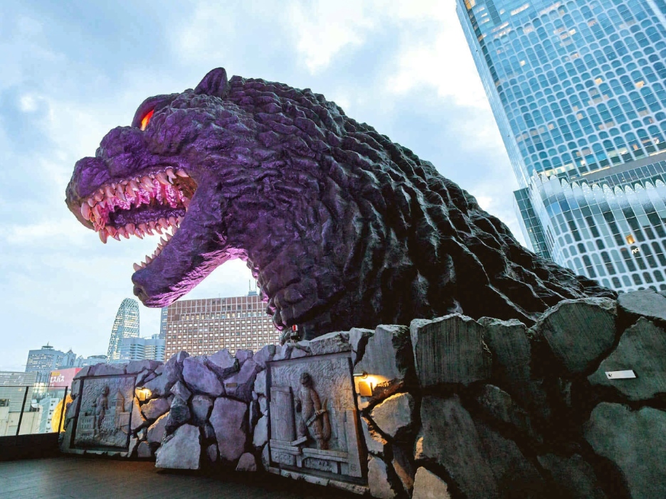El Hotel Gracery Shinjuku es famoso por su enorme estatua de la cabeza de Godzilla asomando entre los edificios.