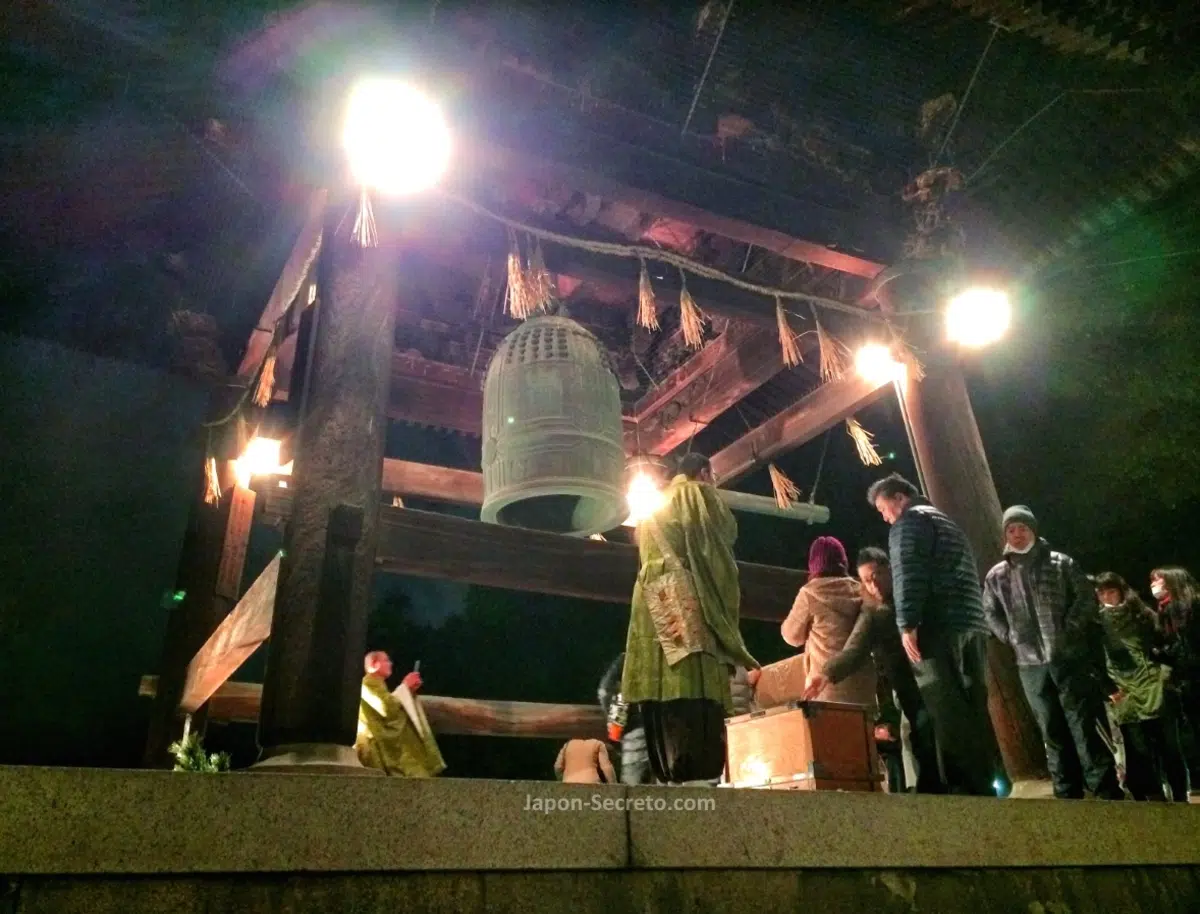 La noche de Nochevieja (alrededor de las 23:00), muchos templos de Japón siguen el ritual de hacer sonar sus campanas.