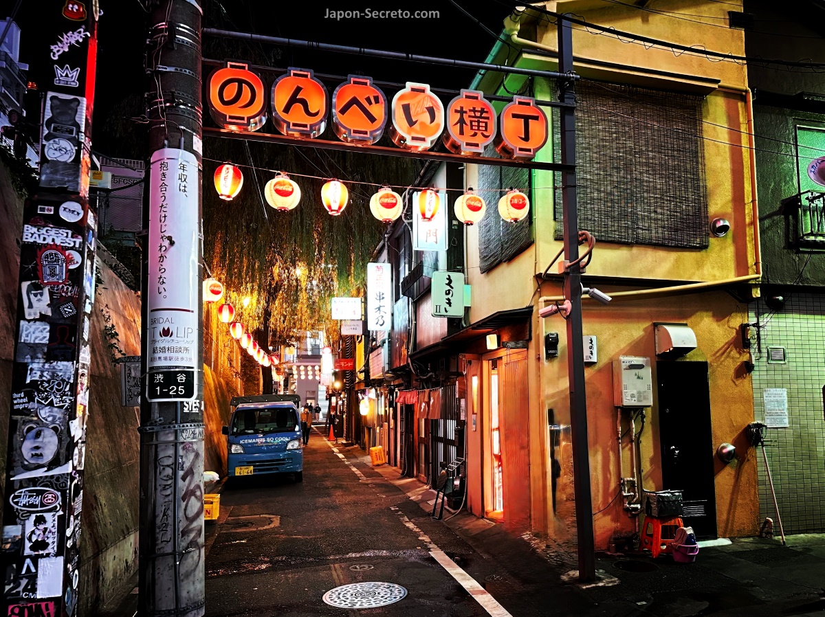 Nonbei Yokochō (のんべい横丁) es un callejón estrecho junto a la estación de Shibuya en el que se agolpan alrededor de 20 pequeños bares, izakayas tradicionales y puestos de comida, muchos tan diminutos que apenas caben entre 5 y 10 personas.