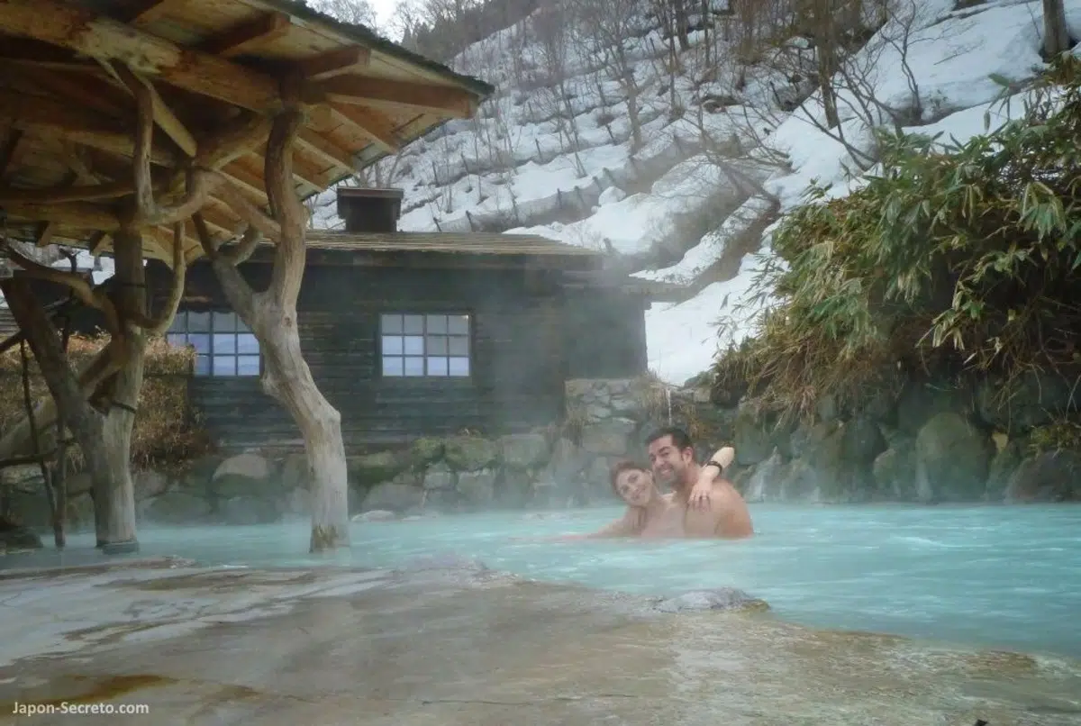 Me refiero a su agua blanca, densa y de textura lechosa que se puede disfrutar en los baños termales de los ryokan de la zona.
